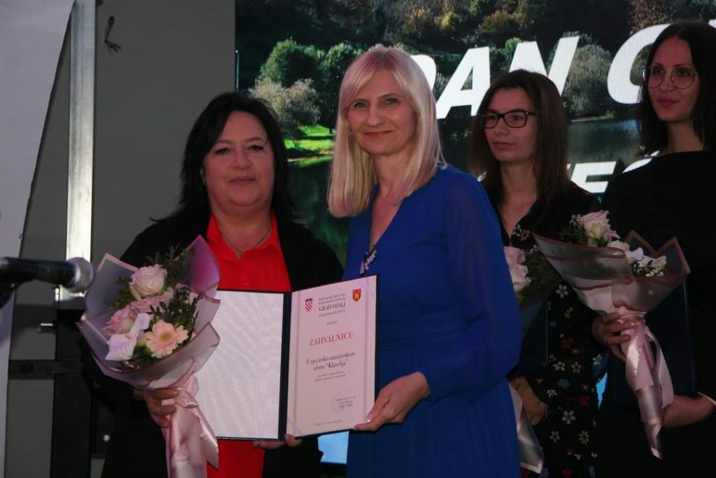 Po prvi puta, gradonačelnica je ove godine dodijelila zahvalnice zaslužnima za doprinos boljitku i promociji Grada Ozlja, i to: Zabavnom centru “Čarobna šuma”, Društvu naša djeca Ozalj, Taekwondo klubu Ozalj, Anđelku Kosu, Vlatku Pečaveru, Cvjećarsko aranžerskom obrtu Klaudija, UDVDR Zrinski Frankopan Ozalj i DVD-u Ozalj. Zahvalnice za promociju Grada Ozlja uručene su Lari Fumić i Eleni Hanžek.