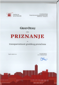 Ponosni smo što je Grad Ozalj peti puta za redom primio priznanje Instituta za transparentnost gradskog proračuna.