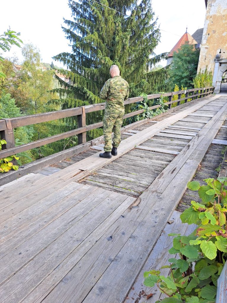 Prošli tjedan održan je sastanak sa Nenadom Santinijem, pripadnikom Inženjerijske pukovnije HKoV-a, vezano za pomoć pripadnika Oružanih snaga RH pri sanaciji pristupnog drvenog mosta u Gradu Ozlju. Naime, iako je Stari grad Ozalj u vlasništvu Družbe ”Braća hrvatskog zmaja”, pristupni most, koji je u vlasništvu Grada Ozlja i koji služi za kolno pješački promet, predstavlja jedinu pristupnu komunikaciju Starog grada, koji je sa svih drugih strana nedostupan.