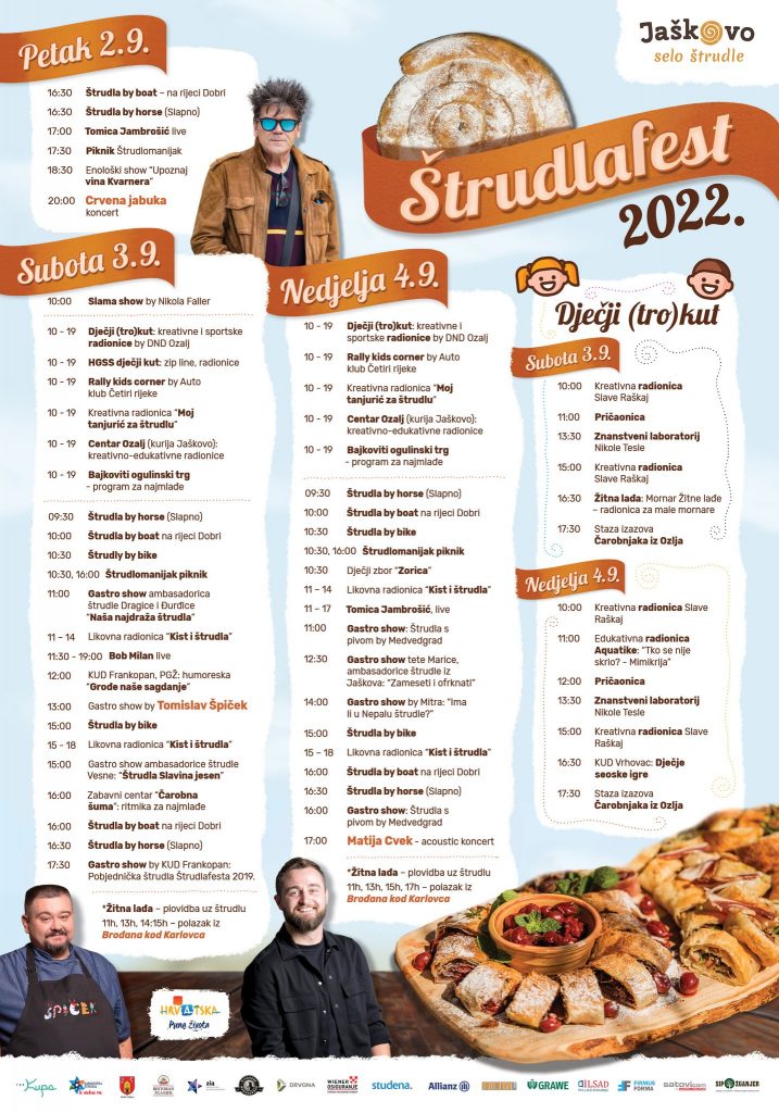 Sudjelujte u bogatom programu 7. Štrudlafesta i uživajte u raznim okusima i mirisima štrudle s ručnom rađenim tijestom koji će svaki zalogaj učiniti posebnim.